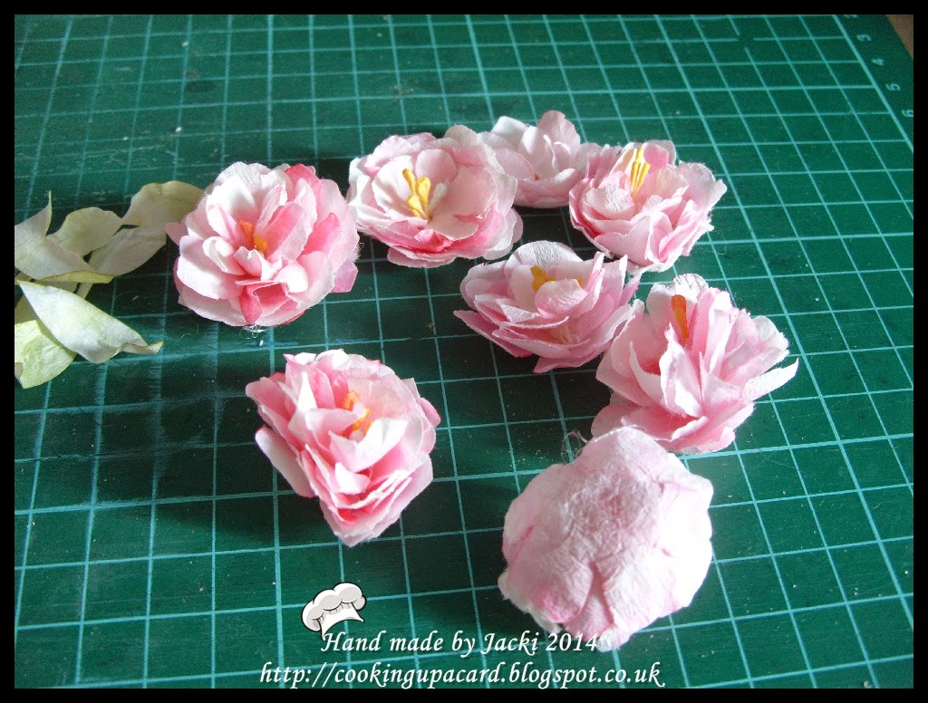 I started this card last night designed it then printed off the papers and image. Then cut everything out and inked up and it was so good to be able to just leave things out to dry and not have to put everything away (meaning the flowers I made).