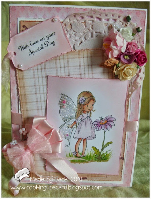 This is gorgeous Jacki, I have that image & I'm ashamed to say I've not used it yet. Love your colouring & that bow is FAB!Hope you're well, my friend, I'm off to have a cuppa....& maybe a cheeky biscuit......rich tea anyone?