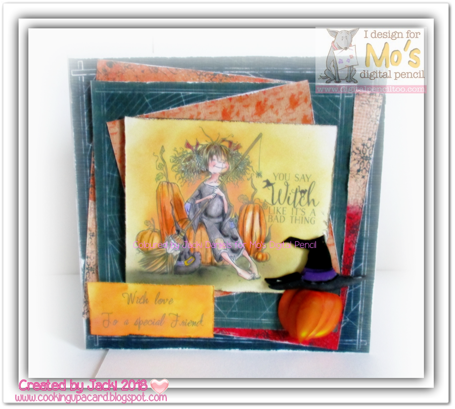 Hello everyone well I'm back with another Mo make this time it's a card for a special friend who's birthday was on Halloween so I decided to make her a fun card using the ubber cute witch Esmarelda